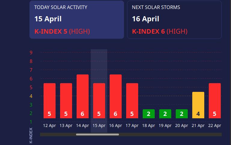 В среду, 16 апреля, на Земле ожидается умеренная магнитная буря уровня G2.