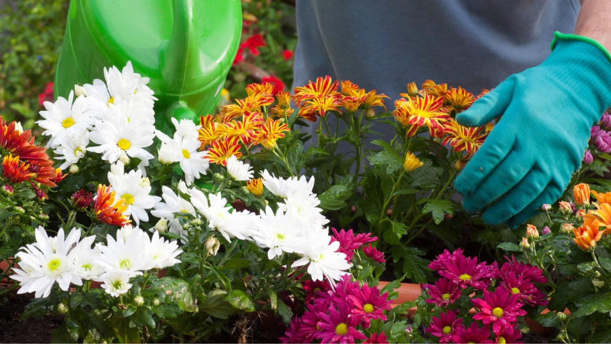 Отцветшие цветки хризантем удаляют, а растения подкармливают и мульчируют для защиты зимой.
