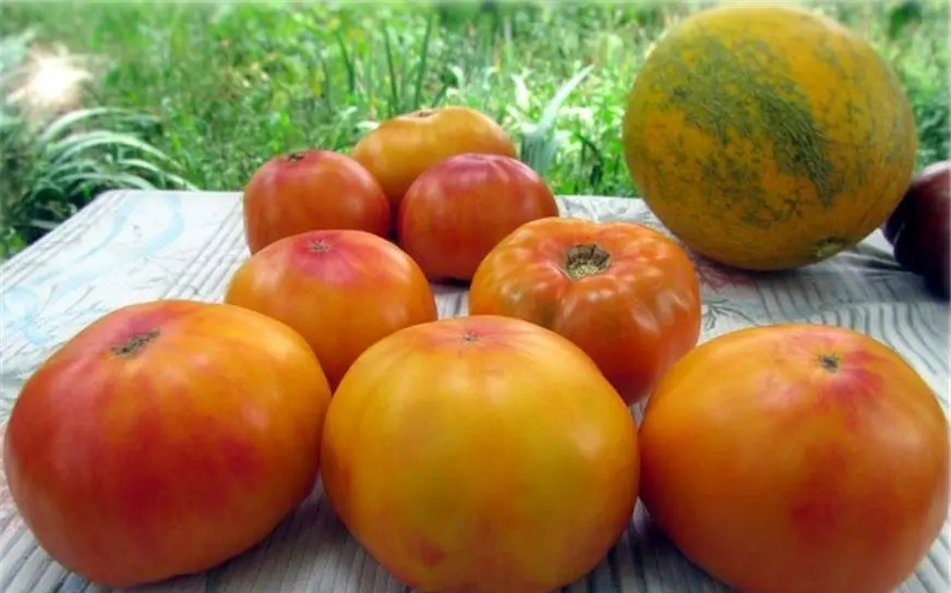 Настоящий лидер среди сладких сортов. Он приехал к нам из США, где завоевал большую популярность за свой необычный сладкий и ароматный вкус. Такие же вкусовые качества этот сорт дарит и украинцам. Кто его уже отведал, тот это подтвердит. Это высокорослый (до 180 см), среднеранний сорт. Растение устойчиво к вирусу фитофтороза. Плоды плоско-круглые, золотисто-желтые с красными «шапочкой», полосами и румянами, очень сладкие, массой до 800 граммов, а некоторые могут весить и до 1 килограмма! Сорт редкий. Непревзойденный вариант для «золотого» томатного сока, салатов. Рекомендовано для детского и диетического питания. Одним словом, находка для гурманов.