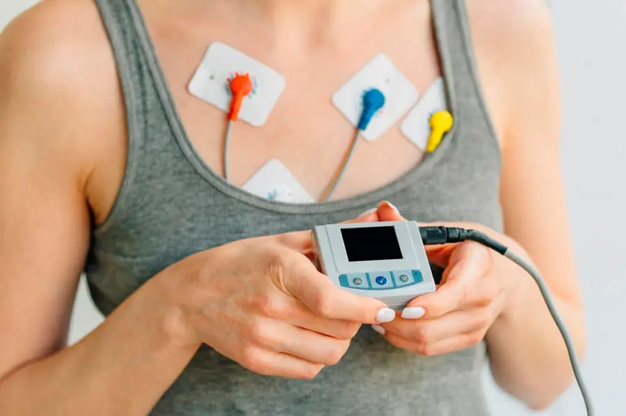 Как проходит обследование? Во время первого визита врач прикрепляет к грудной клетке пациента специальные клейкие датчики. Для лучшего контакта кожу предварительно очищают и обезжиривают. Небольшое устройство (регистратор, холтер) закрепляют на поясе или носят на шнурке на шее.