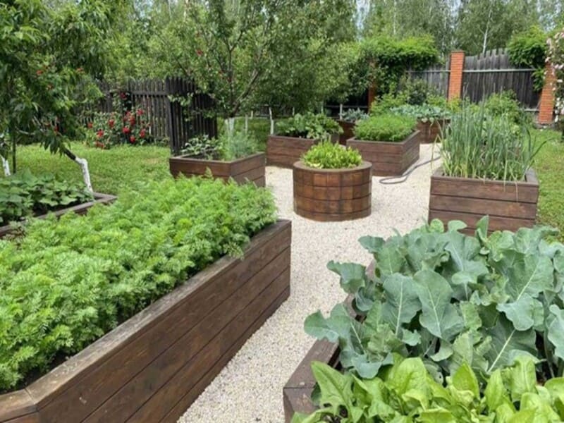 Якщо на вашій ділянці є альтанка або зона для барбекю, можна розмістити город і поруч із ними. Таке місце для городу можна зробити модульним або піднятим. - Використання території для квітників