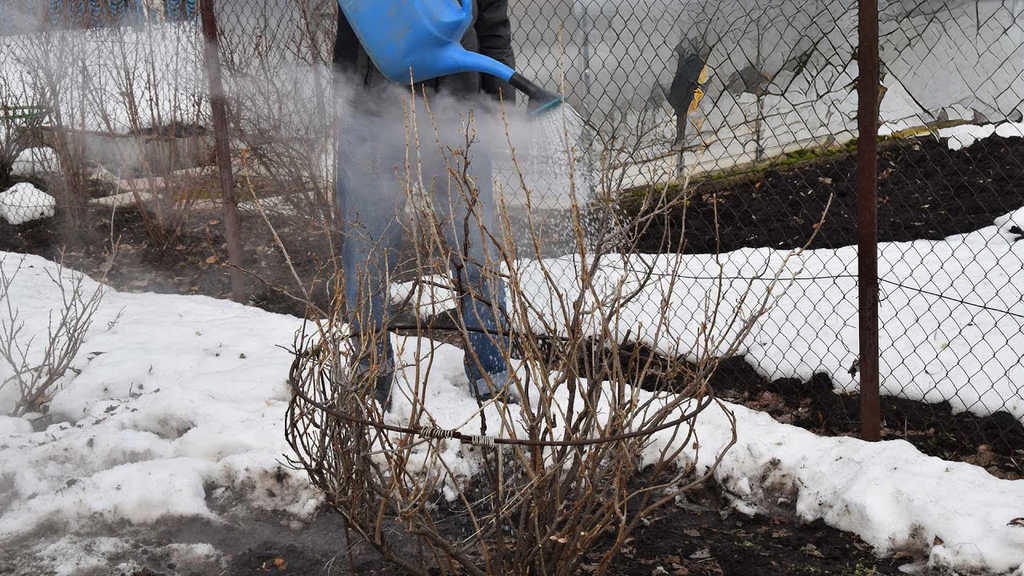 Обробляти кущі таким методом потрібно ранньою весною, коли сніг почне спадати.